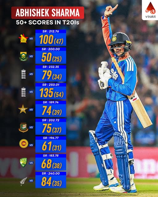 9 fifty-plus scores in T20Is for Abhishek Sharma and every single one with a 180+ strike rate!