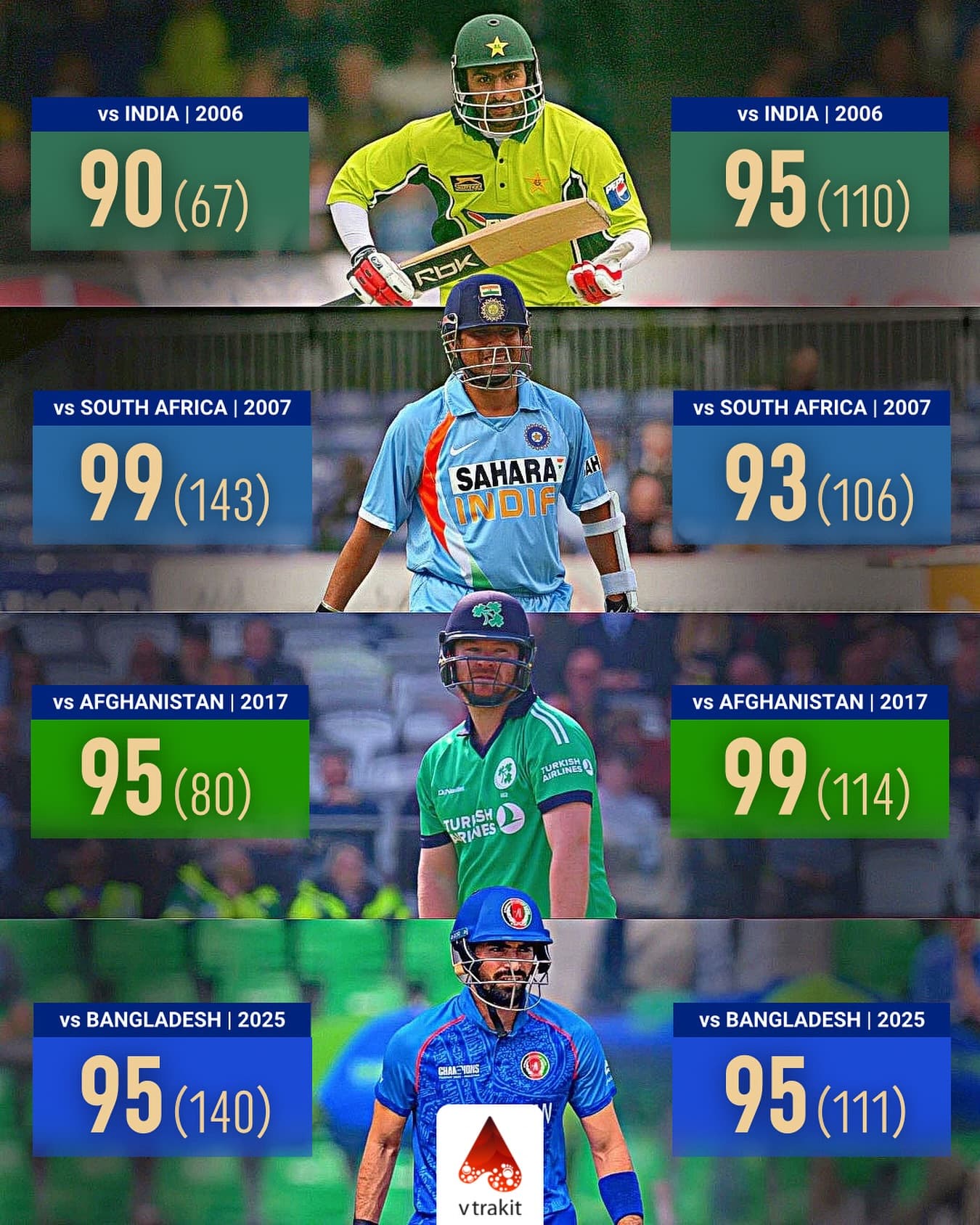 Batters dismissed in the 90s in consecutive ODIs in a bilateral series