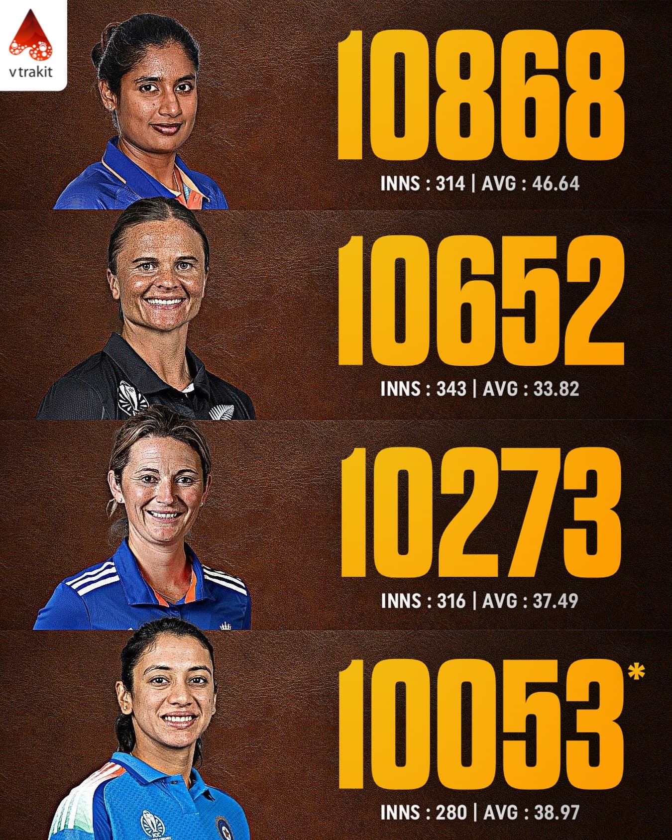 𝐒𝐦𝐫𝐢𝐭𝐢 𝐌𝐚𝐧𝐝𝐡𝐚𝐧𝐚 becomes the fourth woman in history to score 𝟏𝟎,𝟎𝟎𝟎 international runs