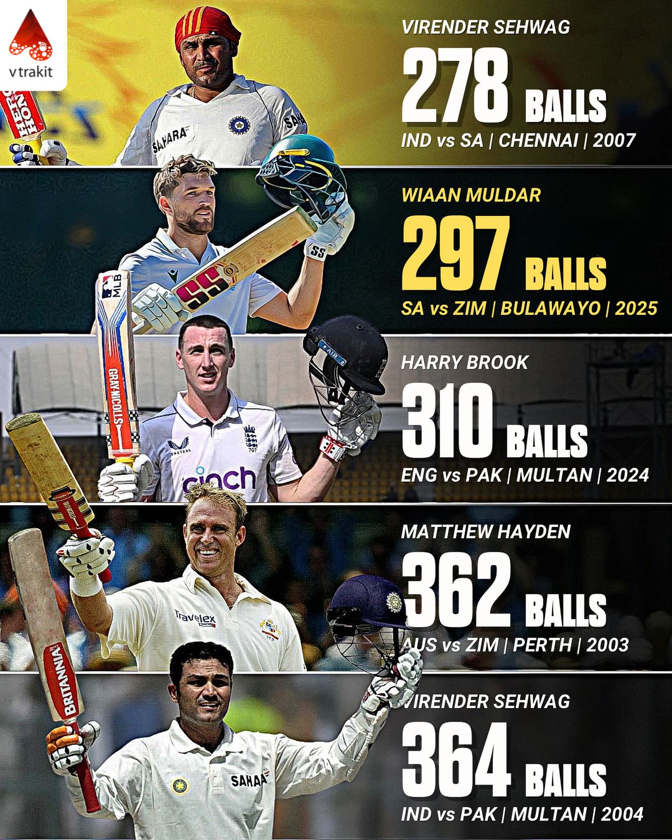 Fastest to reach a triple century in Test cricket by balls