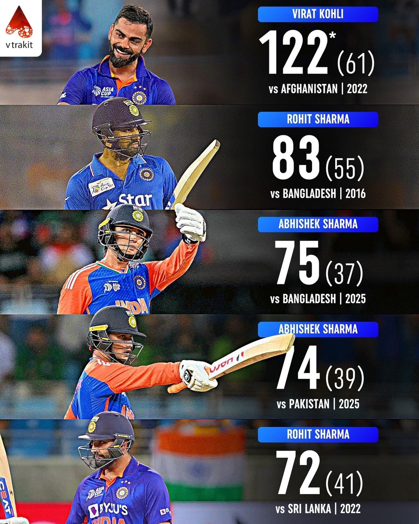 Highest individual scores for India in T20 Asia Cup history