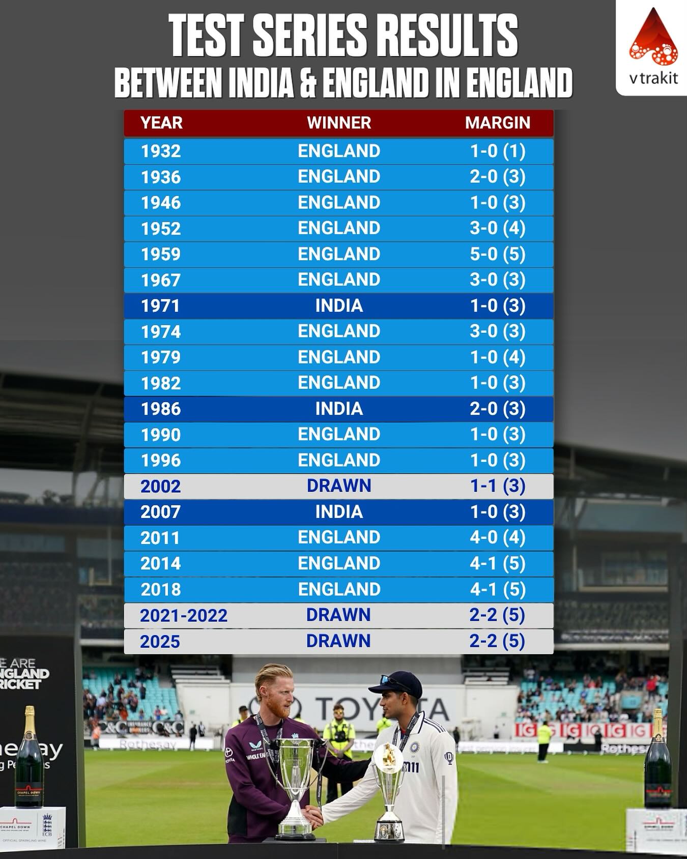 India vs England - Test series results
