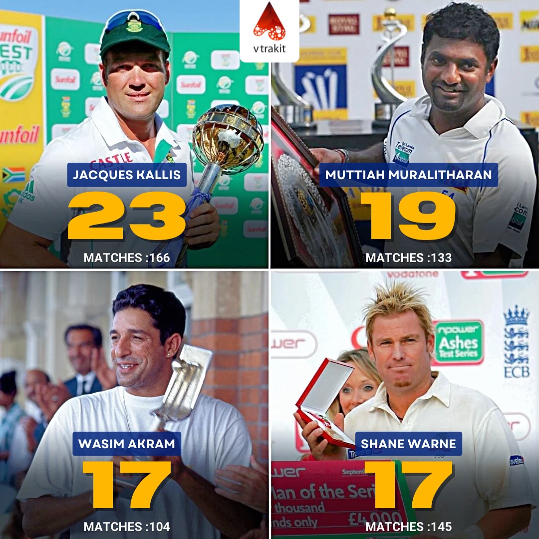 Jacques Kallis holds the record for the most Man-of-the-Match awards in Test history