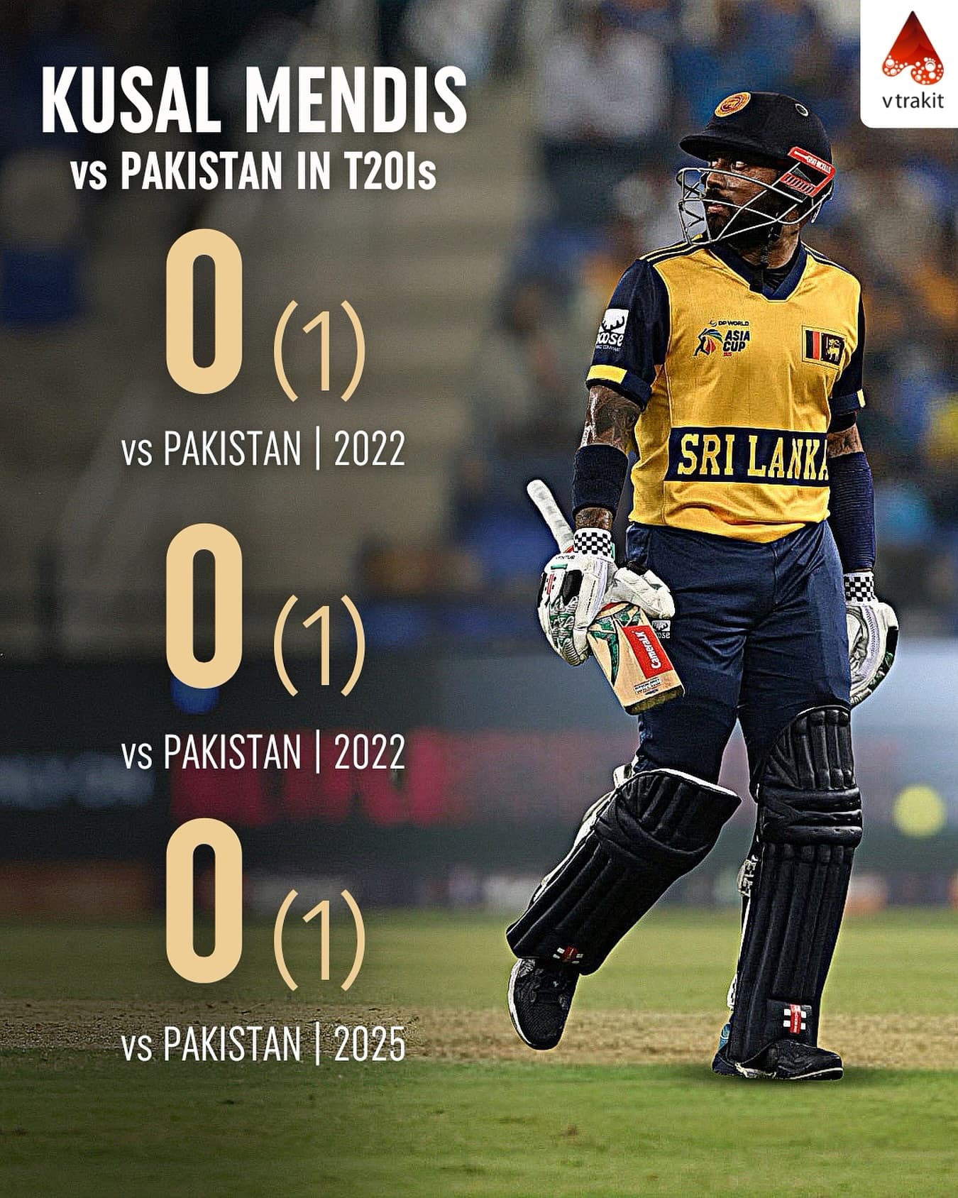 Kusal Mendis played 3 T20Is against Pakistan and was dismissed for a golden duck each time!