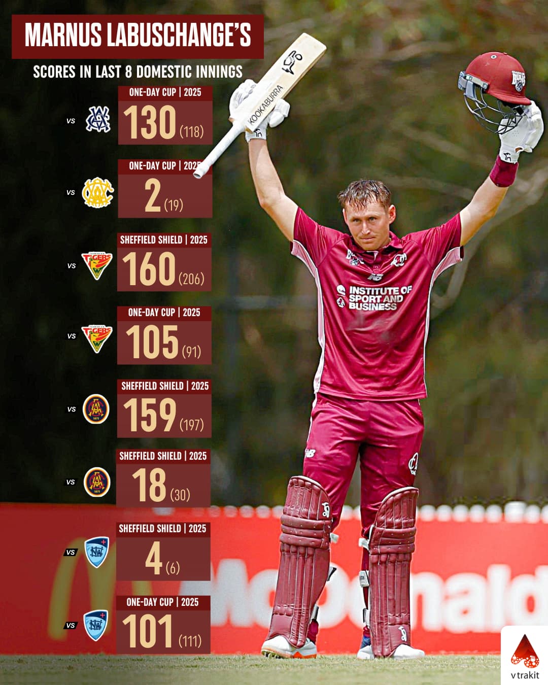 Marnus Labuschagne’s last 8 domestic innings scores