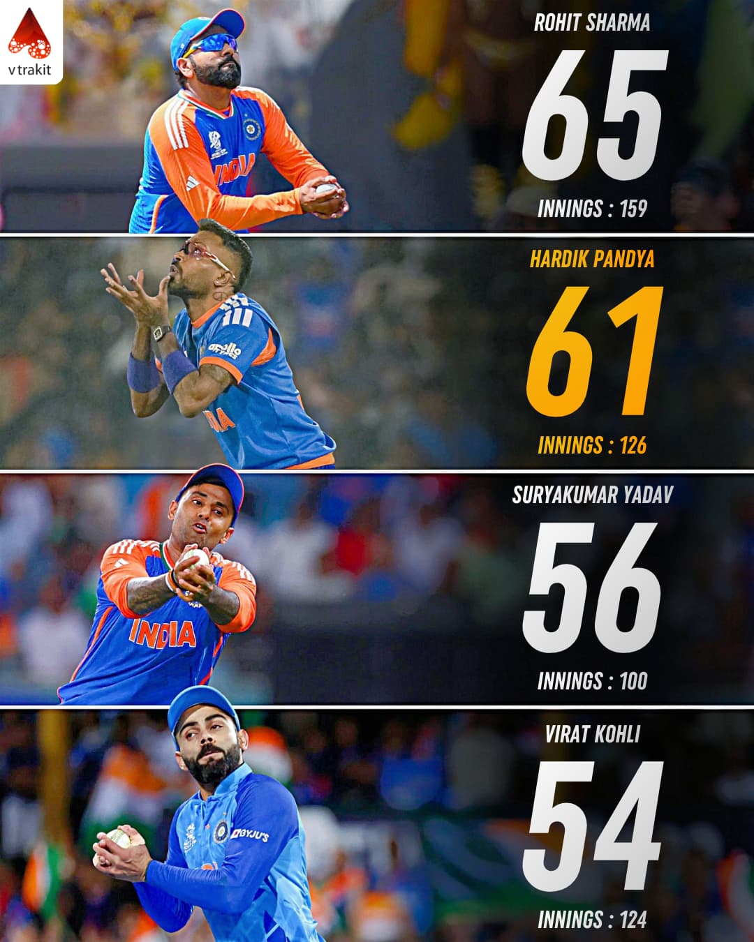 4. Most catches for India in T20Is