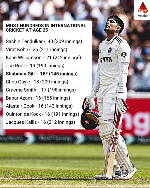 Most hundreds in international cricket at age 25 (as of 16.10.2025)