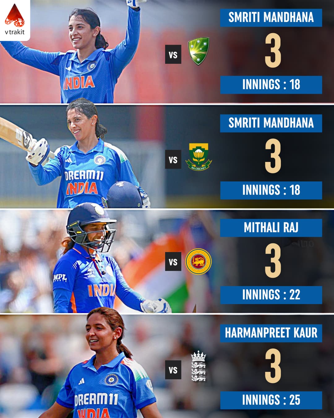 Most ODI hundreds vs an opponent (IND-W)
