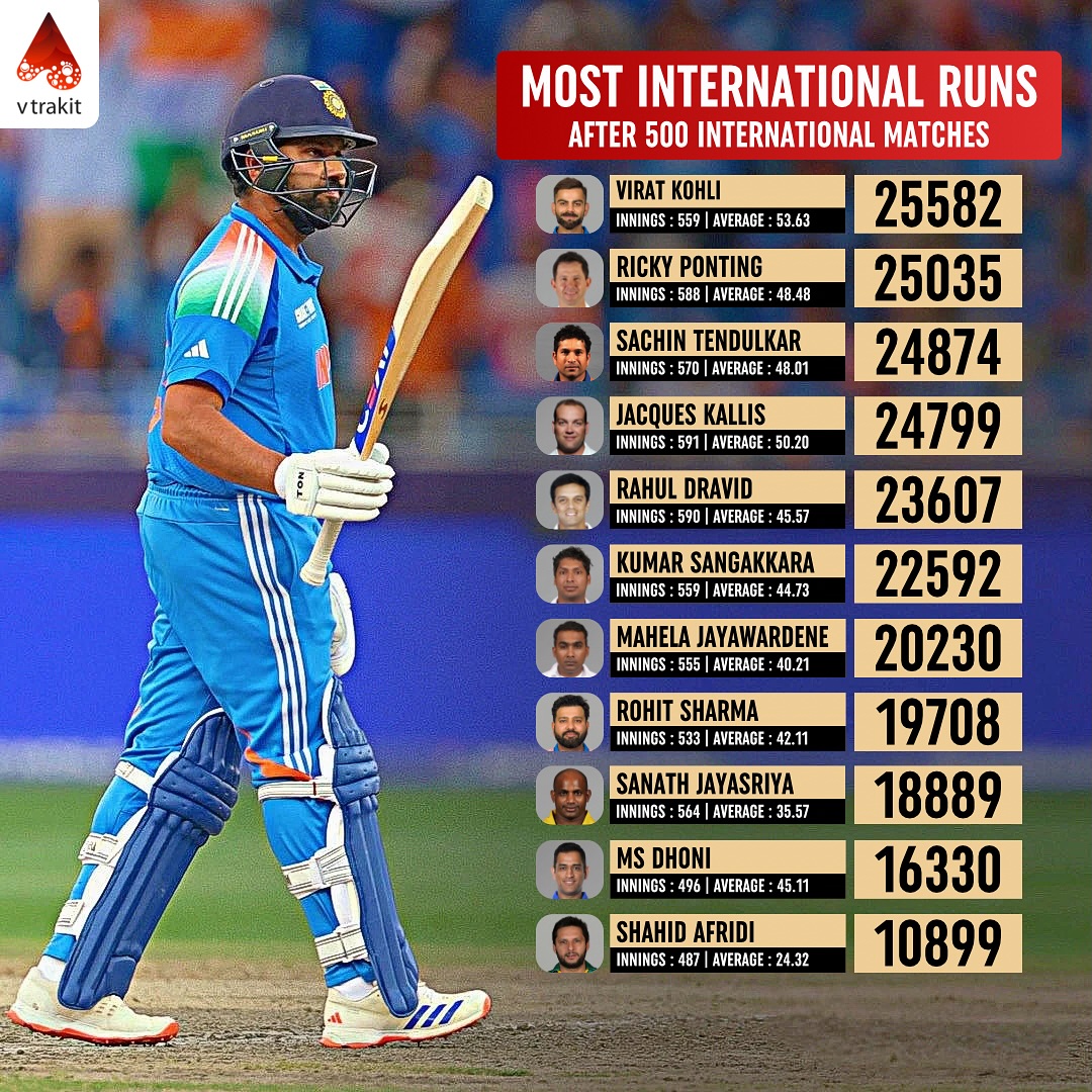 Most runs after playing 500 international matches