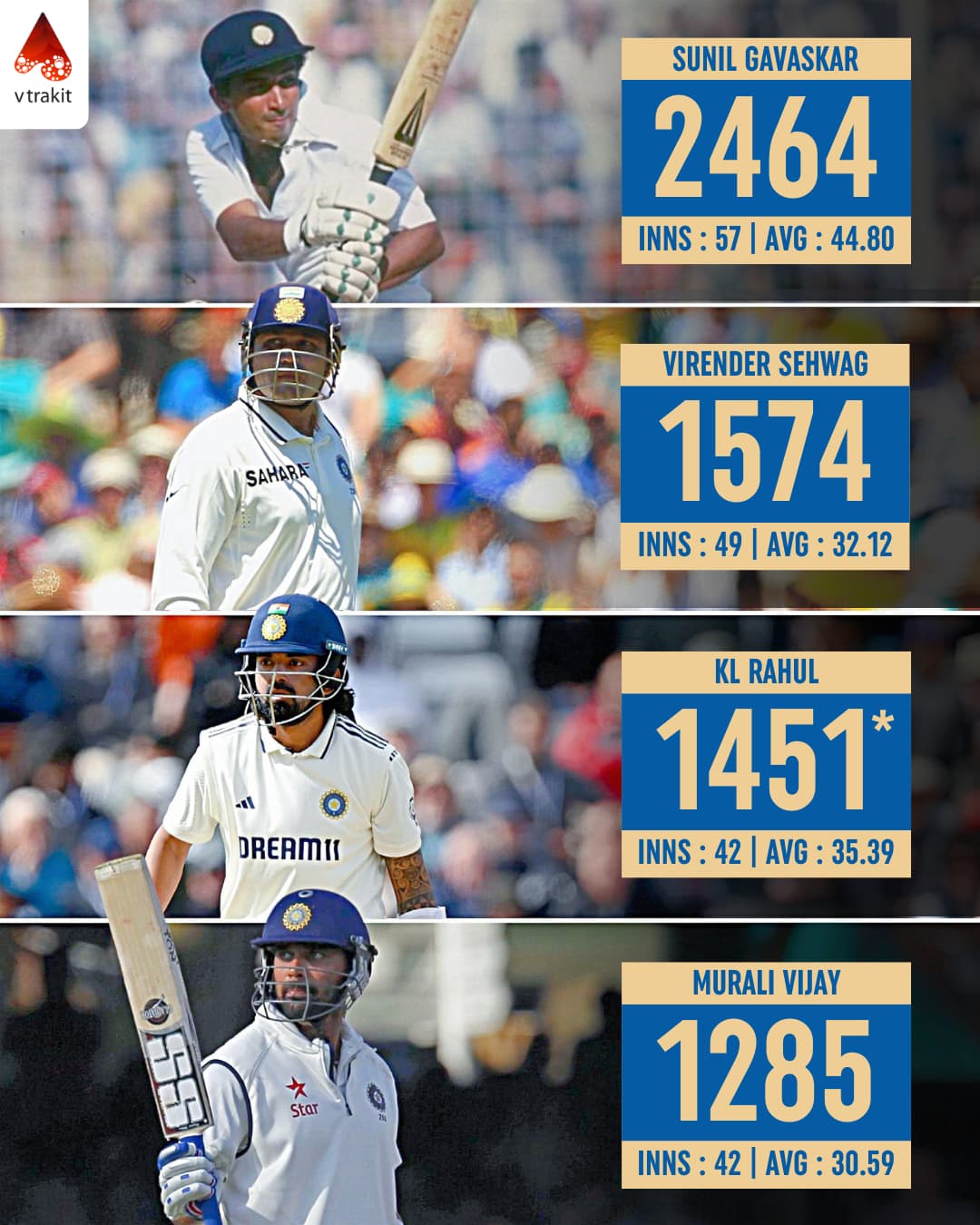 3.Most runs as a opener for India in SENA