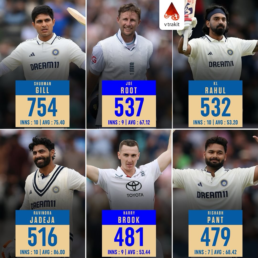 Most Runs in the 2025 Anderson-Tendulkar Trophy
