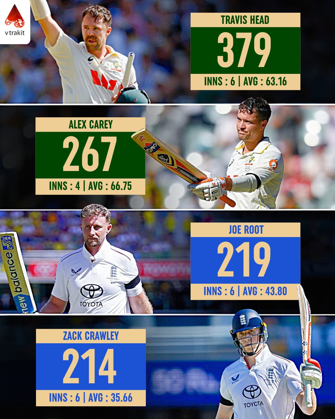 1. Most runs in Ashes 2025.26