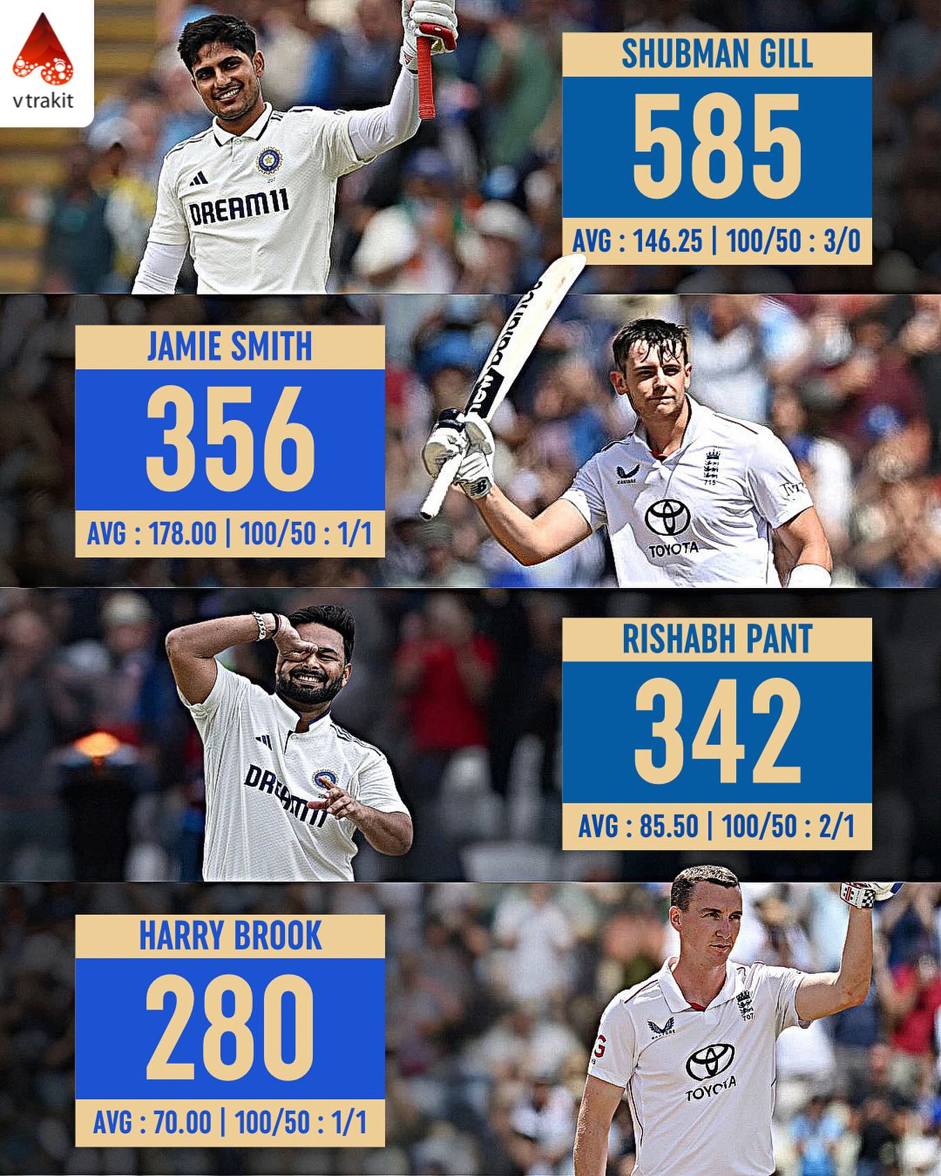 Most Runs in the Sachin–Anderson Trophy 2025 (after 4 innings each)