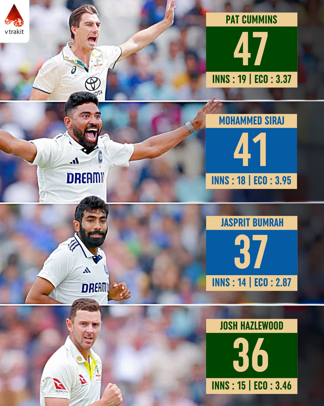 1. Most wickets by a visiting bowler against England in England in WTC history