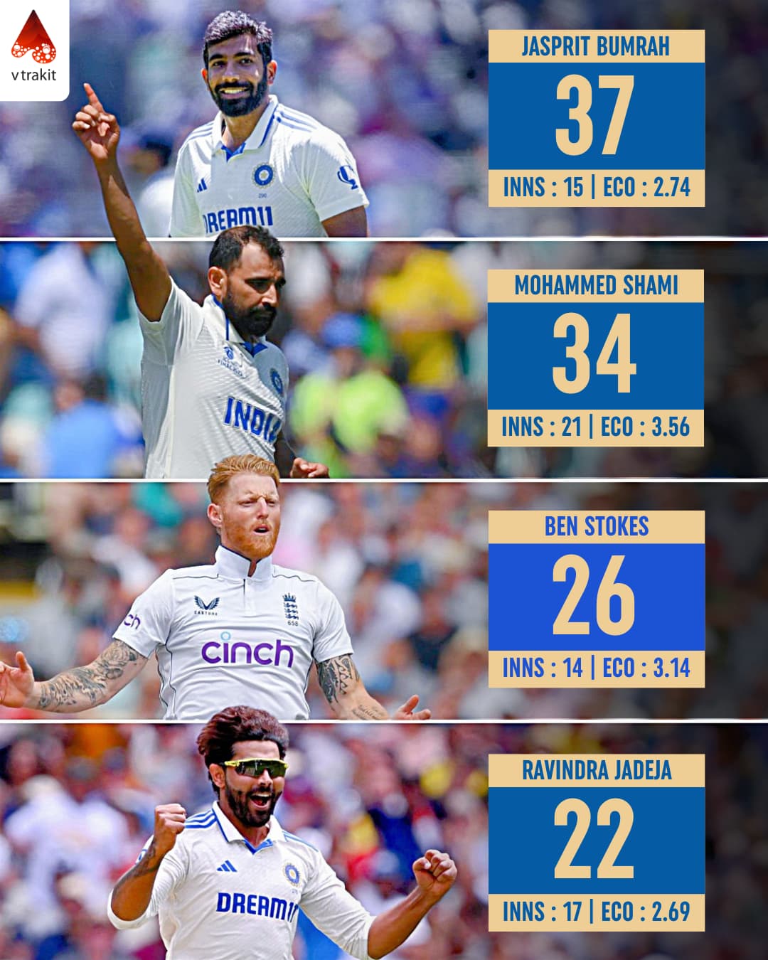 Most wickets in India vs England in England among active players Jasprit Bumrah holds the record for most Test wickets in India vs England matches played in England