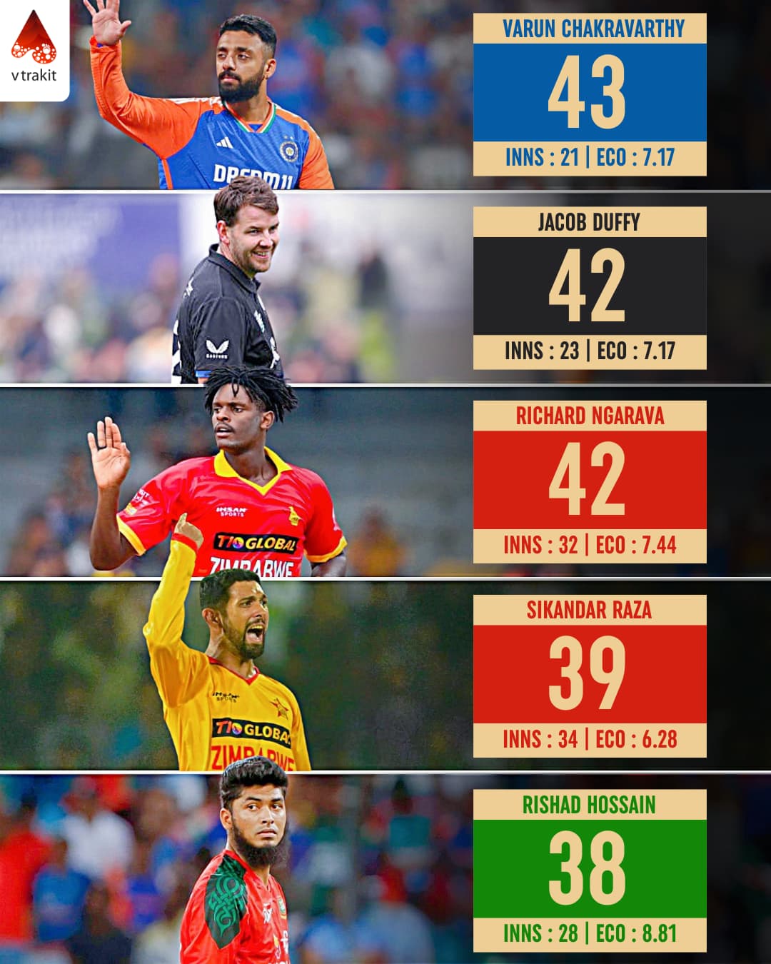 5. Most wickets in T20Is since T20 WC 2024