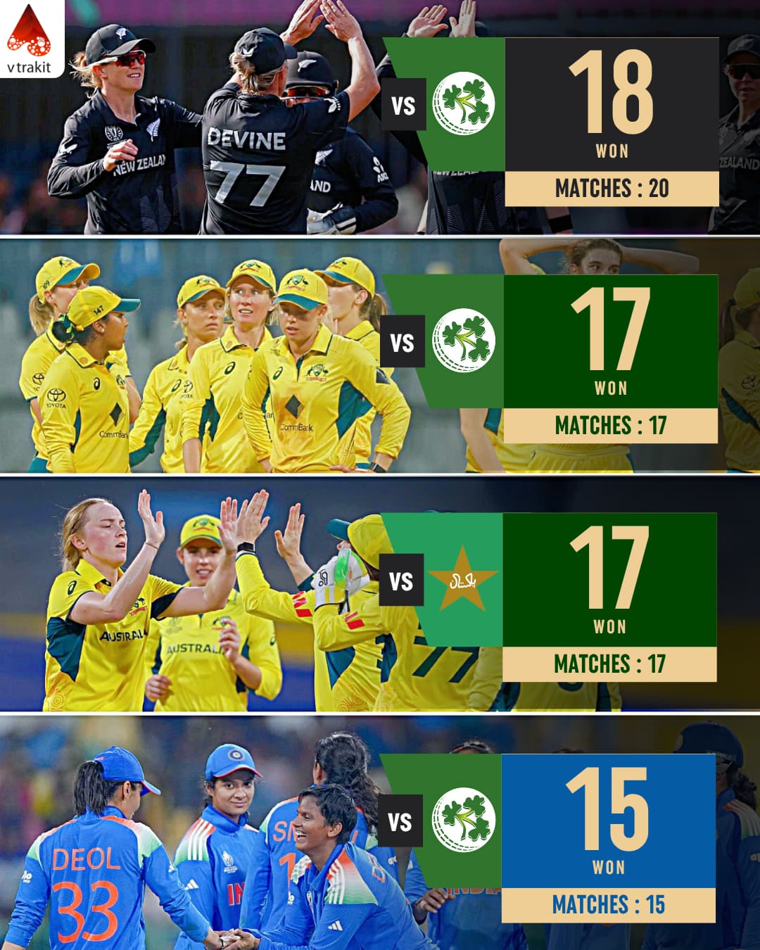 1.Most wins for a team against an opponent without a loss in Women's ODIs