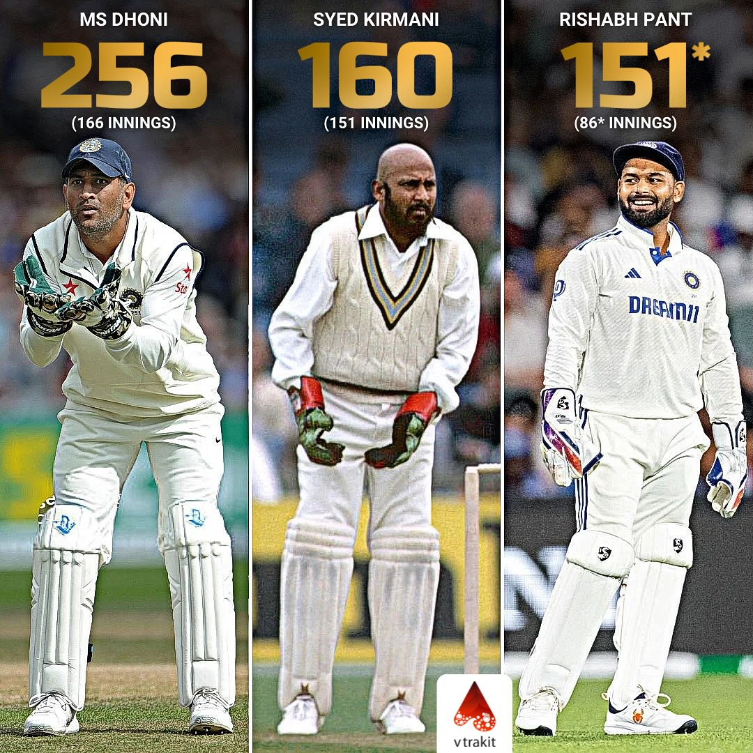 Rishab Pant completes 𝟏𝟓𝟎 catches in Test cricket, becoming only the third Indian wicketkeeper to achieve the feat
