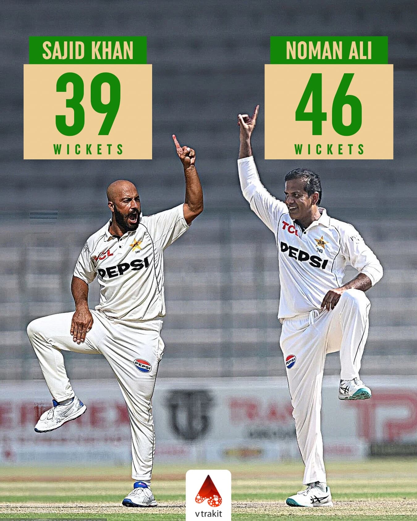In the last 5 home Tests, Pakistan has bowled out every opponent in both innings, with 𝐍𝐨𝐦𝐚𝐧 𝐀𝐥𝐢 & 𝐒𝐚𝐣𝐢𝐝 𝐊𝐡𝐚𝐧 taking 𝟖𝟓 of the 𝟏𝟎𝟎 wickets, leaving just 15 wickets to the rest of the bowlers.