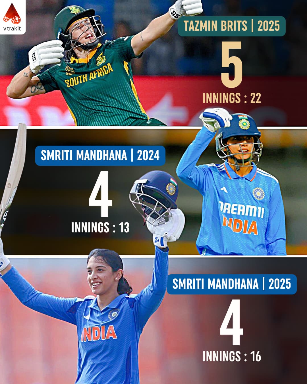 Tazmin Brits became the player with most centuries in a calendar year in Women’s ODIs