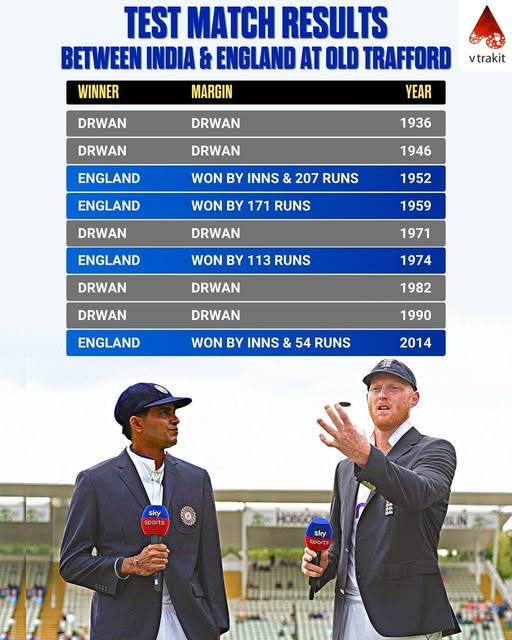 Test match results at Old Trafford, Manchester between India and England. India has never won a Test against england at this venue. Can India end the winning streak here in Machester