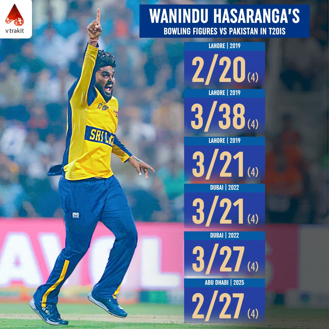 Wanindu Hasaranaga’s figures vs Pakistan in T20Is