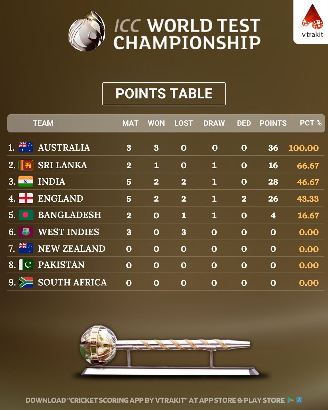 WTC 2025–27 points table as of 05/08